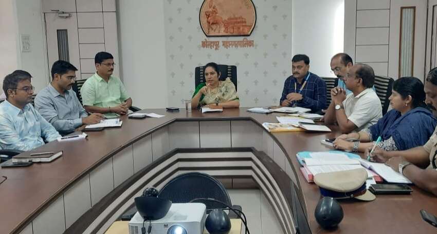 प्रशासक के.मंजूलक्ष्मी यांनी यावेळी सर्व विभागांनी येणा-या संभाव्य आपत्ती साठी सज्ज राहावे. पूर परिस्थितीतील नागरिकांना स्थलांतरित करण्यात येणा-या निवारा केंद्रांच्या ठिकाणी आवश्यक त्या सुविधा उपलब्ध करुन द्या. शहरामध्ये जेथे जेथे खड्डे पडलेले आहेत तेथे मुरमाद्वारे पॅचवर्क करण्याच्या सूचना सर्व उप-शहर अभियंता यांना दिल्या. निवारा केंद्रामध्ये दयावयाच्या चहा, नाष्टा व जेवणाचे बचत गटामार्फत नियोजन करावे. नाले सफाईमधून आज अखेर 50 हजार टनापेक्षा जास्त गाळ काढण्यात आला आहे. त्यामुळे शहरात कोठेही नाले परिसरामध्ये नागरी वस्तीत पाणी शिरलेले नाही. याबद्दल आरोग्य विभागाचे अभिनंदन. शहरातील धोकादायक इमारती व होर्डींग्ज उतरवून घ्या. आपत्तीच्या काळात पाणी पुरवठा सुरळीत राहण्यासाठी काळम्मावाडी योजनेचे चोख नियोजन करा. पहिल्यांदा पाणी येणा-या भागामध्ये नागरीकांना सर्तक राहण्याच्या सूचना वेळोवेळी अग्निशमन विभागाने द्याव्यात. स्थलांतरीत होणा-या नागरीकांची दैनंदिन नोंदणी अपडेट ठेवावी. पूराच्या कार्यक्षेत्रात येणा-या हॉस्पीटलला इशारा पातळी गाठताच स्थलांतरीत होण्याबाबत लेखी पत्र देण्याच्या सूचना आरोग्याधिका-यांना दिल्या.