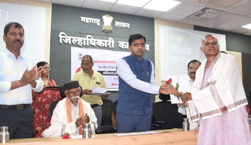 आणीबाणीत कारावास भोगलेल्या व्यक्तींचा प्रमाणपत्र देऊन सन्मानसंविधान हत्या दिवस कार्यक्रमाचे जिल्हाधिकारी कार्यालयात आयोजन