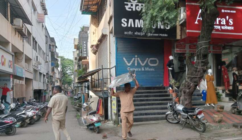 राजारामपुरी व स्टेशन रोड परिसरातील अनधिकृत हातगाड्या, शेड व स्टँड बोर्ड जप्त