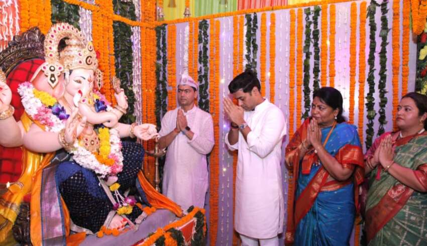 महाराष्ट्र सदनातील सार्वजनिक गणेशोत्सव समितीच्यावतीने गणरायाची प्राणप्रतिष्ठा खा. डॉ श्रीकांत शिंदे यांनी केली. यावेळी निवासी आयुक्त आर. विमला, अपर निवासी आयुक्त निवा जैन, सहायक निवासी आयुक्त स्मिता शेलार, महाराष्ट्र परिचय केंद्राच्या उपसंचालक मनिषा पिंगळे, माहिती अधिकारी अंजू निमसरकार, व्यवस्थापक प्रमोद कोलपते, लेखा अधिकारी निलेश केदारे यासह अनेक अधिकारी, कर्मचारी आणि गणेशभक्त उपस्थित होते. सकाळी कोपर्निकस मार्गावर काढण्यात आलेली मिरवणूक ‘गणपती बाप्पा मोरया’ आणि ‘मंगलमूर्ती मोरया’च्या जयघोषाने दुमदुमली. ढोल-ताशांचा गजर आणि मंत्रोच्चारांनी गणरायाची प्राणप्रतिष्ठा थाटामाटात संपन्न झाली.