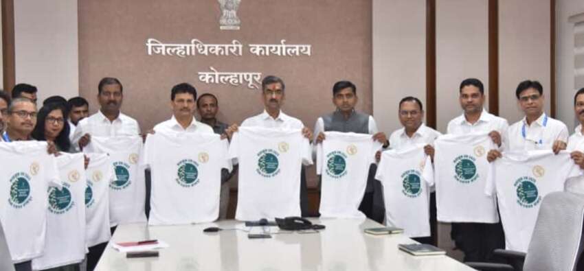 कोल्हापूर, : जिल्ह्यातील नागरिकांना नशामुक्तीबाबत जागरुक करण्यासाठी जिल्हा प्रशासन, पोलिस विभाग आणि विविध सामाजिक संस्थांच्या संयुक्त विद्यमाने नशामुक्त कोल्हापूर अभियान अंतर्गत, शाही दसरा महोत्सव कालावधीमध्ये ‘रन अँड वॉक’ चे आयोजन करण्यात आले आहे. जिल्हाधिकारी कार्यालयातील शाहूजी सभागृहात पर्यटन, खनिकर्म, माजी सैनिक कल्याण मंत्री शंभूराज देसाई यांच्या हस्ते व सार्वजनिक आरोग्य व कुटुंब कल्याण मंत्री तथा पालकमंत्री प्रकाश आबिटकर यांच्या उपस्थितीत ‘नशामुक्त कोल्हापूरसाठी रन अँड वॉक’ टी-शर्ट चे अनावरण करण्यात आले.