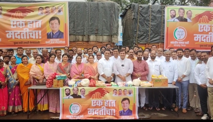 सन २००५ मध्ये कोल्हापूर जिल्ह्याला महापुराचा प्रचंड मोठा तडाखा बसला होता. त्यावेळी खासदार धनंजय महाडिक यांनी, युवाशक्तीच्या माध्यमातून पूरग्रस्तांना मदतीचा हात दिला. लोकसहभागातून झालेले ते काम आजही लक्षात आहे. गेल्या आठवड्यात मराठवाड्यात धुवॉंधार पाऊस झाला. सोलापूर, बार्शी यासह मराठवाड्यातील अनेक जिल्हयांना महापुराचा फटका बसला आहे. हजारो एकर शेती पाण्याखाली गेली आहे. तर कित्येक घरांमध्ये महापुराचे पाणी शिरले. अशा वेळी भाजप आणि खासदार धनंजय महाडिक यांनी, मराठवाड्यातील पुरग्रस्तांसाठी मदतीचा हात पुढे केला आहे. पुरग्रस्तांना उपयोगी ठरेल असे दैनंदिन वापराच्या वस्तूंचे कीट बनवण्यात आले आहे. त्यामध्ये गहू, तांदूळ, तेल, कडधान्य, चटणी, मीठ, टूथपेस्ट, ब्रश, विविध प्रकारचे मसाले, साबण, ब्लँकेट, औषध – गोळ्या असे साहित्य आहे. मराठवाड्यातील सुमारे दीड हजार नागरिकांसाठी ही कीट आज कोल्हापुरातून रवाना झाली. आमदार अमल महाडिक, भागीरथी संस्थेच्या अध्यक्षा सौ. अरुंधती महाडिक यांच्यासह महाडिक परिवार, भाजपचे महेश जाधव, विजय जाधव, माजी नगरसेवक अजित ठाणेकर, प्रदीप उलपे, राजसिंह शेळके, भगवानराव काटे, विजयसिंह खाडे, भैय्या शेटके, संग्राम निकम, संजय निकम, विलास वास्कर, मारुती माने, चंद्रकांत घाटगे, महेश वासुदेव, रूपाराणी निकम, उमा इंगळे, भाग्यश्री शेटके यावेळी उपस्थित होते. दोन ट्रक मधून, मराठवाड्यातील पूरग्रस्त नागरिकांना हे साहित्य पाठवण्यात आले. पुढील टप्प्यात चादर, ब्लँकेट, जाजम, कपडे यासह जनावरांसाठी चारा पाठवण्याचे नियोजन असल्याचे खासदार धनंजय महाडिक यांनी सांगितले. तसेच राज्य शासन पातळीवरून पुरग्रस्तांना मदत दिली जाईल, असेही खासदार महाडिक यांनी सांगितले. यावेळी भाजपा जिल्हाध्यक्ष नाथाजी पाटील, राजू मोरे, भरत काळे, सदानंद राजवर्धन, हंबीरराव पाटील, नामदेव पाटील, प्रकाश पाटील, संदीप कुंभार, विशाल शिराळकर, सुधीर राणे, रहीम सनदी, शैलेश पाटील यांच्यासह कार्यकर्ते उपस्थित होते.