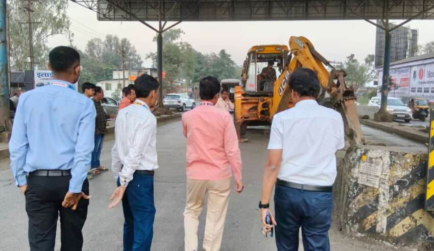 शिरोली जकात नाक्यातील जुना डिव्हायडर हटविण्याचे काम महापालिकेच्यावतीने सुरू