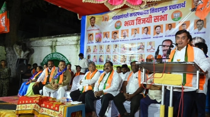हातकणंगले नगरपंचायत निवडणूक प्रक्रिया सुरू असून भाजपने नगराध्यक्ष उमेदवारासह नगरसेवकांच्या सर्व जागासाठी उमेदवार उभे केले आहेत. या उमेदवारांच्या प्रचारार्थ नामदार चंद्रकांतदादा पाटील यांनी हातकंणगले शहरातून प्रचार रॅली काढून सभेला उपस्थिती लावली. शहराचा सर्वांगीण विकास करण्या बरोबर प्रत्येक कुटुंबाचा विकास झाला पाहिजे. यासाठी भाजपा सरकारनं महिलांसाठी मातृवंदना, मुलींच्या शिक्षणासाठी योजना, जेष्ठ नागरिकांना मोफत प्रवास, लखपती ताई योजना, लाडकी बहिण योजना, एक लाखाचे व्यावसायिक कर्ज, आण्णासाहेब पाटील आर्थिक विकास महामंडळामार्फत १५ लाख रुपये विनाव्याज व्यावसायिक कर्ज, शिक्षण फी माफ, अटल पेन्शन योजना, अशा अनेक योजना शासन राबवते आहे. गावात पाणी योजना आणण्यासाठी ६४ कोटी रुपये लागणार आहेत. रिंगरोडसाठी जमीन अधिग्रहण करण्यासाठी दोन-अडीचशे कोटी, रस्ते करण्यासाठी शंभर कोटी लागतील. त्याचबरोबर विकासकामांसाठी करोडो रुपये निधी लागणार आहे. हा निधी विरोधक कोठून आणणार आहेत, याचा विचार मतदारांनी करावा. त्यामुळे जनतेने विरोधकांच्या भुलथापाना बळी पडू नये, असे नामदार चंद्रकांतदादा पाटील म्हणाले. तर देशाचे पंतप्रधान नरेंद्र मोदीजी यांच्या दुरदृष्टीमुळे देशाचा झपाट्याने विकास होतोय. देशाची अर्थव्यवस्था सुधारत आहे. भाजपाने अनेक चांगल्या योजना आणल्या आहेत, त्या लोकांपर्यंत पोचवण्यासाठी हातकणंगले नगर पंचायतीत भाजपचेच पॅनेल बहुमताने निवडून द्या, असे आवाहन खासदार महाडिक यांनी केले. यावेळी माजी आमदार सुरेश हळवणकर, अरुण इंगवले, नगराध्यक्ष पदाचे उमेदवार राजू इंगवले, मंडल अध्यक्ष शितल हावळे यांनी मनोगत व्यक्त केले. सभेला प्रसाद खोबरे, स्मिता इंगवले, गुंडा इरकर, सरपंच अजिंय इंगवले, अमर इंगवले यांच्यासह भाजपाचे पदाधिकारी, ग्रामस्थ उपस्थित होते.