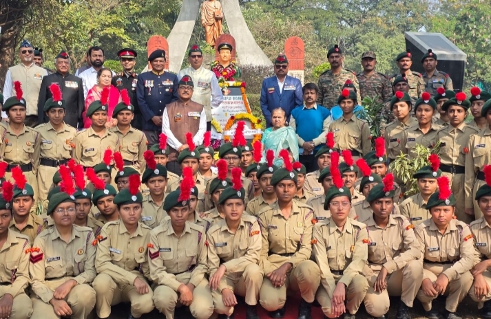 कॅप्टन शंकर सखाराम वाळकर यांना NCC च्या विद्यार्थ्यांकडून अभिवादन
