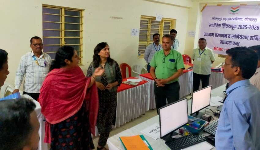 कोल्हापूर, (प्रतिनिधी): कोल्हापूर महानगरपालिका सार्वत्रिक निवडणूक २०२५-२६ साठी नियुक्त मुख्य निवडणूक निरीक्षक शीतल तेली-उगले यांनी राजारामपुरी येथील व्ही. टी. पाटील सभागृहात स्थापन करण्यात आलेल्या माध्यम कक्षाला भेट दिली. त्यांनी माध्यम कक्षाच्या कामकाजाची सविस्तर पाहणी केली आणि आवश्यक सूचना दिल्या.