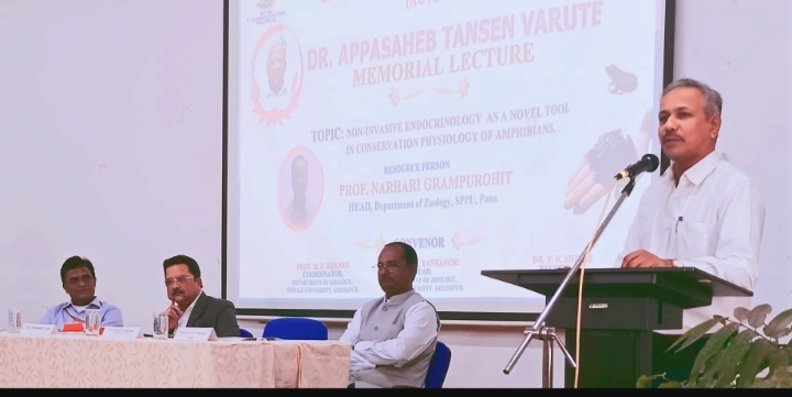 “उभयचरांच्या संवर्धन शारीरक्रियेत शस्त्रक्रियाविरहित अंतःस्त्रावी शास्त्राचे महत्त्व” या विषयावर बोलताना डॉ. ग्रामपुरोहित म्हणाले, बेडूक, साप, सरडे यांसारखे उभयचर व सरीसृप प्राणी आज पर्यावरणीय बदल, प्रदूषण, जंगलतोड आणि हवामान बदलामुळे नामशेष होण्याच्या मार्गावर आहेत. या प्राण्यांच्या संवर्धनासाठी आधुनिक विज्ञानात शस्त्रक्रियाविरहित अंतःस्त्रावी शास्त्र (Non-invasive Endocrinology) ही एक महत्त्वाची आणि उपयुक्त पद्धत ठरत आहे. या पद्धतीत प्राण्यांना इजा न करता त्यांच्या लघवी, विष्ठा, त्वचा स्राव किंवा केसांमधील संप्रेरकांचे (हार्मोन्सचे) परीक्षण केले जाते. त्यामुळे त्यांच्या आरोग्याची स्थिती, तणावाची पातळी, प्रजननक्षमता आणि पर्यावरणाशी जुळवून घेण्याची क्षमता समजते.
