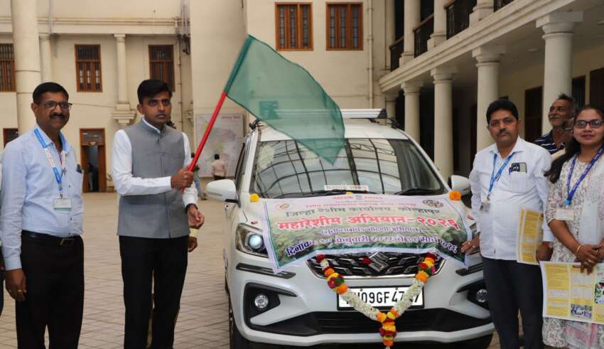 कोल्हापूर, : कोल्हापूर जिल्ह्यामध्ये महाराष्ट्र शासनातर्फे रेशीम संचालनालय नागपूर यांच्या अधिनस्त जिल्हा रेशीम कार्यालय, कोल्हापूर यांच्यामार्फत महारेशीम अभियान 11 मार्च 2026 अखेर राबविण्यात येत आहे. या अभियानामध्ये जिल्ह्यातील जास्तीत जास्त शेतकऱ्यांनी कमी खर्चामध्ये जास्तीत जास्त व शाश्वत उत्पन्न देणाऱ्या रेशीम उद्योगामध्ये सहभाग नोंदवावा, असे आवाहन जिल्हाधिकारी अमोल येडगे यांनी केले. या अभियानाचा शुभारंभ जिल्हाधिकारी कार्यालयाच्या प्रांगणात जिल्हाधिकारी अमोल येडगे यांच्या हस्ते रेशीम रथास हिरवा झेंडा दाखवून करण्यात आला, त्यावेळी ते बोलत होते.