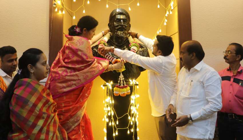 कोल्हापूर(प्रतिनिधी):- छत्रपती शिवाजी महाराज यांच्या जयंतीनिमित्त महापालिकेच्यावतीने आज महापालिकेच्या राजर्षि छत्रपती शाहू सभागृहातील छत्रपती शिवाजी महाराज यांच्या पुतळयास महापौर सौ.रुपाराणी निकम यांच्या हस्ते पुष्पहार अर्पण करुन त्यांना अभिवादन करण्यात आले. यावेळी उपमहापौर अक्षय जरग, विरोधी पक्षनेता राजेश लाटकर, नगरसेविका माधुरी व्हटकर, अतिरिक्त आयुक्त रविकांत आडसूळ, शिल्पा दरेकर, मुख्य लेखापरीक्षक कलावती मिसाळ, मुख्य लेखापाल संजय सरनाईक, नगरसचिव सुनिल बिद्रे, उपशहर अभियंता सुरेश पाटील, कामगार अधिकारी राम काटकर, रवका अधिकारी प्रशांत पंडत, सिस्टीम मॅनेजर यशपालसिंग रजपूत, कर्मचारी संघाचे संजय भोसले व कर्मचारी उपस्थित होते.