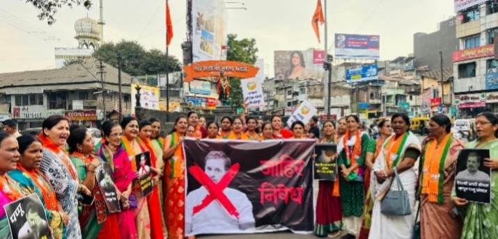 भाजपा महिला, युवा मोर्चाच्या वतीने काँग्रेस नेते राहुल गांधी यांचा जाहीर निषेध