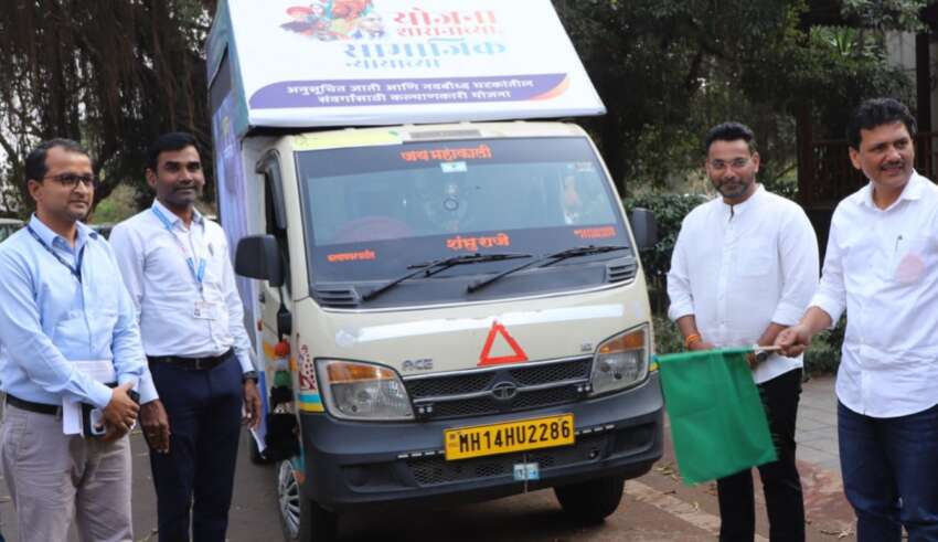 कोल्हापूर, : यावर्षीच्या जिल्हा वार्षिक अनुसूचित जाती उपयोजनेअंतर्गत सामाजिक न्याय विभागाच्या विविध कल्याणकारी योजनांची जनजागृती करण्यासाठी ‘एलईडी चित्ररथांची’ निर्मिती करण्यात आली आहे. जिल्ह्यातील १२ तालुक्यांमध्ये फिरणाऱ्या या चित्ररथांना जिल्हयाचे पालकमंत्री तथा राज्याचे सार्वजनिक आरोग्य व कुटुंब कल्याण मंत्री प्रकाश आबिटकर यांनी हिरवी झेंडी दाखवून मार्गस्थ केले. यावेळी खासदार धैर्यशील माने, समाज कल्याण सहायक आयुक्त सचिन साळे आणि जिल्हा माहिती अधिकारी सचिन अडसूळ उपस्थित होते.