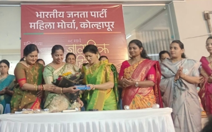 कोल्हापूर:भारतीय जनता पार्टी महिला मोर्चाच्यावतीने जागतिक महिला दिन भाजपा जिल्हा कार्यालयात उत्साहात संपन्न झाला. नूतन महापौर रुपाराणी निकम यांच्या हस्ते भारतमाता प्रतिमा पूजन करून कार्यक्रमाची सुरुवात करण्यात आली.