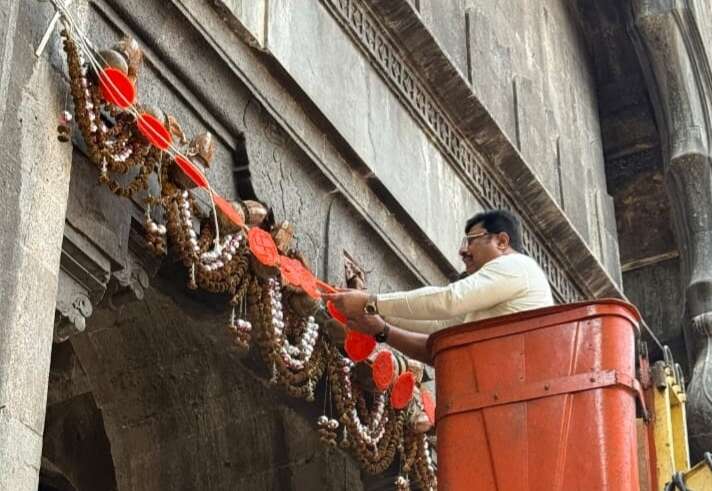 कोल्हापूर : मराठी नववर्षाच्या स्वागताचा पहिला दिवस म्हणजेच गुढी पाडव्याचा सण पारंपरिक पद्धतीने मोठ्या उत्साहात साजरा केला जातो. दारोदारी उभारण्यात आलेल्या गुढ्या, रांगोळीची आकर्षक सजावट आणि परिचितांना दिल्या जाणाऱ्या नवनवर्षाच्या शुभेच्छांची दिवसभर रेलचेल पाहायला मिळते. शहरासह जिल्ह्यात पारंपरिक पद्धतीने सण साजरा करण्यात येतो. विशेष म्हणजे कोल्हापुरातील माळकर कुटुंबीय दरवर्षी रितीरिवाजाप्रमाणे ऐतिहासिक भवानी मंडपाला साखरेच्या माळेचं तोरण बांधतात. गेल्या चार पिढ्यांपासून भवानी मंडपाला माळकर कुटुंबीयांकडून तोरण बांधण्याची परंपरा सुरू आहे. कोल्हापूर संस्थानचे तत्कालीन छत्रपती राजाराम महाराजांना कन्यारत्न झालं, तेव्हा आनंदोत्सव म्हणून रामचंद्र माळकर यांनी विशिष्ट साच्यातील साखरेची माळ बनविली. २५ फुटांची असणारी ही साखरेची माळ त्यावेळी राजवाड्याचे प्रवेशद्वार असणाऱ्या भवानी मंडपाला तोरण म्हणून बांधण्यात आली होती. ही परंपरा आजतागायत माळकर कुटुंबियांच्या चौथ्या पिढीकडून अखंडपणे सुरू आहे. आज परंपरेने सकाळी राज्य नियोजन मंडळाचे कार्यकारी अध्यक्ष आमदार श्री.राजेश क्षीरसागर यांच्या हस्ते भवानी मंडपाला २५ फुटी साखरेची माळ बांधण्यात आली. यावेळी नगरसेवक ऋतुराज क्षीरसागर, नगरसेविका मंगल साळोखे, माळकर कुटुंबातील निखील माळकर, सागर माळकर, शंतनू माळकर, किशोर घाटगे, कपिल नाळे आदी उपस्थित होते.