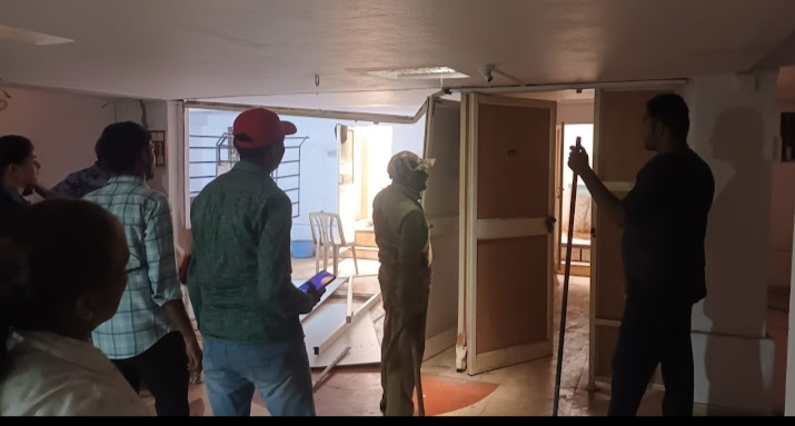 कोल्हापूर,: सी वॉर्ड बिंदू चौक परिसरातील सि.स. नं. 525 येथील एम.के. टॉवर अपार्टमेंटमध्ये दिलीप आनंदराव मोरे यांनी मंजूर नकाशाव्यतिरिक्त जादा व विनापरवाना बांधकाम केल्यामुळे आज महानगरपालिकेच्यावतीने कारवाई करण्यात आली. या कारवाईत तळघरातील बाथरूम व टॉयलेट्सचे अनधिकृत बांधकाम हटविण्यात आले असून उर्वरित कारवाई उद्या करण्यात येणार आहे.